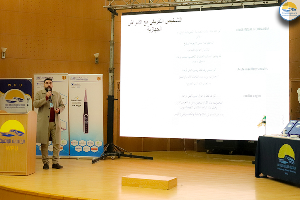 كما ألقى الدكتور كريم سرور محاضرة علمية نوعية تحدث فيها عن ” الاختيار الأمثل لأجهزة الروتاري وأجهزة تحديد الذروة في علاج القنوات الجذرية شديدة الانحناء ” موضحاً معايير اختيار جهاز تحديد الذروة وتقنية التحضير المسبق مع الإضاءة على التحديات التشريحية وتخطيط المعالجة وبروتوكول الإرواء في القنوات المنحنية .