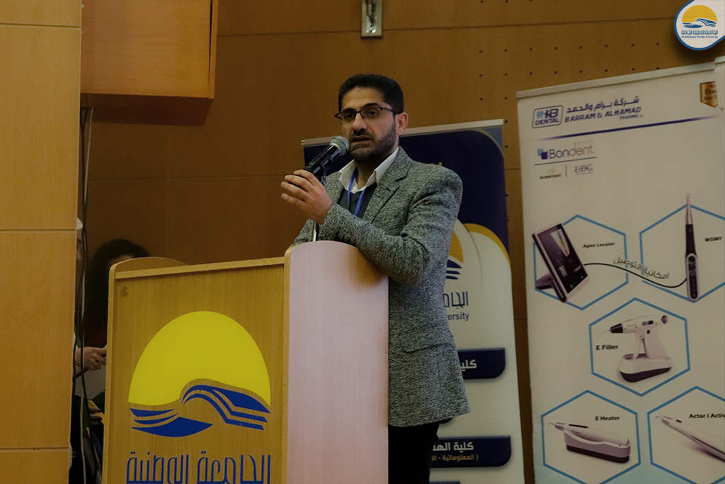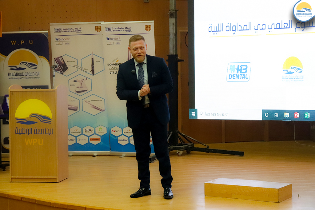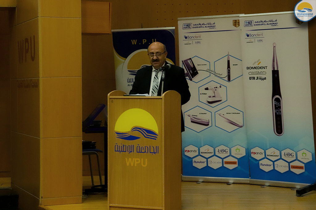 بدورهِ ألقى الدكتور عبد الوهاب برام المدير العام لشركة برام والحمد كلمةً ترحيبية ، تحدث فيها عن آفاق التعاون العلمي بين الشركة والجامعة الوطنية والتي تعتبر بوابةً حقيقية يطلّ منها طلبة طب الأسنان على عالم التجهيزات الطبية الحديثة والتي توفرها الشركة بخدمات وكفالات مميزة ، مؤكداً سعي الشركة إلى إكساب الطلاب المهارات العملية في استخدام الأجهزة الطبية الجديدة في عمليات المداواة اللبية من خلال ورشات عمل مخبرية نوعية .
