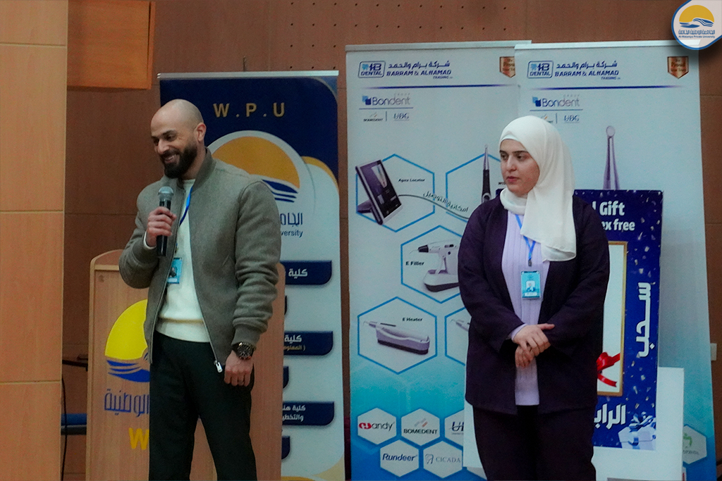اختتمت فعاليات اليوم الأول من الأسبوع العلمي في المداواة اللبية بعددٍ من النشاطات التفاعلية التي أقامتها شرّكة برام والحمد بالتعاون مع الجامعة الوطنية الخاصة ، في خطوةٍ نحو تعزيز التغذية الرجعية لدى الطلبة من خلال مسابقات علمية حصلَ من خلالها الطلبة على جوائز من الأجهزة والأدوات الطبية الحديثة المستخدمة في المداواة اللبية .