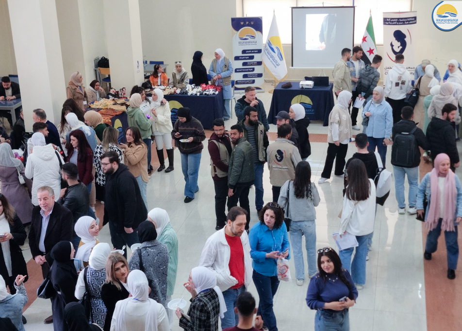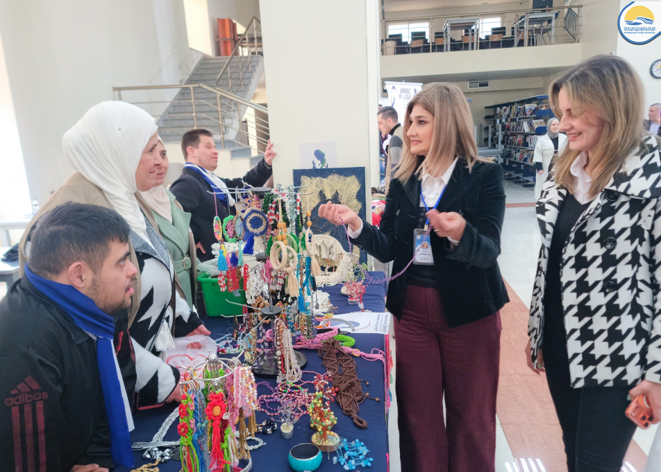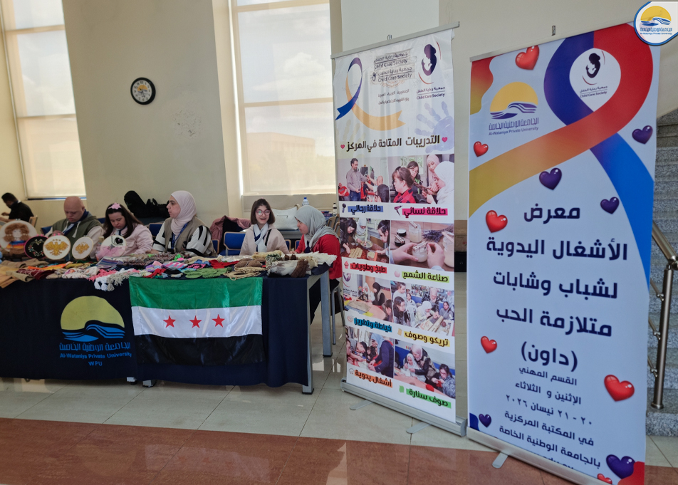 استضافت الجامعة الوطنية الخاصة معرض الأشغال اليدوية لشباب وشابات متلازمة داون، والذي أقامته جمعية رعاية الطفل التابعة لمحافظة حمص، وذلك في المكتبة المركزية للجامعة على مدار يومي الإثنين والثلاثاء الموافقين 20 ـ 21 نيسان 2026. وجاء تنظيم المعرض بإشراف الآنسة سحر الأخرس ـ مؤسسة مراكز الداون التعليمية والمهنية، وبمشاركة فاعلة من أعضاء إدارة مراكز الداون (آ. نجوى عبارة، أ. توفيق طليمات) ، إلى جانب عدد من الأعضاء المشرفين على الأعمال المهنية لشباب وشابات متلازمة داون