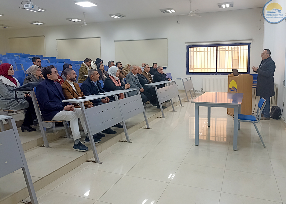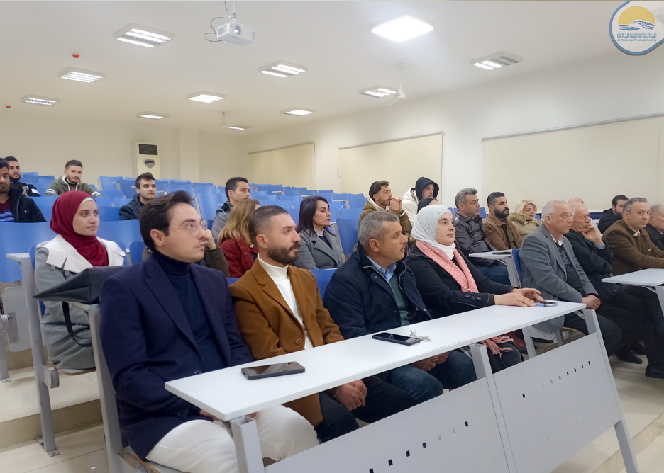 انطلقت المحاضرة العلمية تحت رعاية الأستاذ الدكتور عهد خزام رئيس الجامعة، وبإشراف من الدكتورة عبير زيداني عميد كلية العلوم الإدارية والمالية ، وبحضورٍ من رئيس وأعضاء مجلس الأمناء، ونائبي رئيس الجامعة للشؤون العلمية والإدارية، بالإضافة إلى نخبة من أعضاء الهيئة التدريسية وطلاب الكلية.