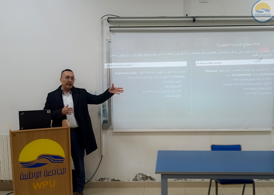 أوضح الدكتور عبيدة الشققي من خلال عرضه التقديمي أن دراسة الجدوى تعتبر أداة تقييم أساسية يُلجأ إليها عندما يتعين تقييم قرار استراتيجي هام ، وأكدّ أن الحاجة إليها تبرز بوضوح في القطاعين العام والخاص ، حيث تعمل كبوصلة تضمن اتخاذ قرارات مبنية على حقائق وأرقام بعيداً عن العشوائية.
