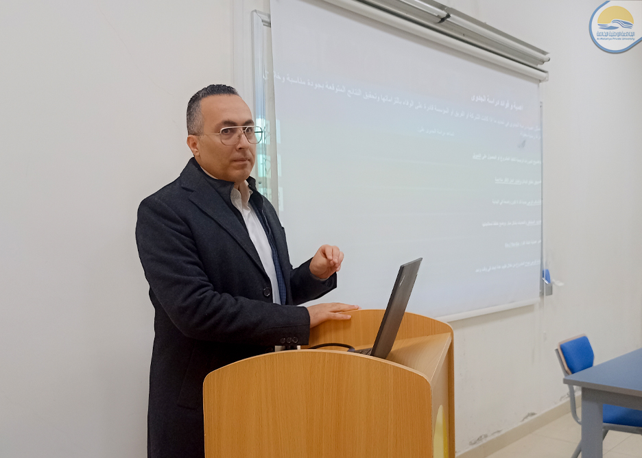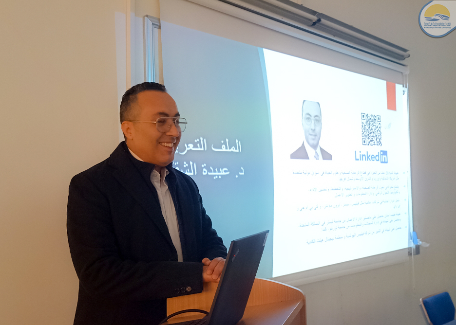 في إطار سعيها المستمر لربط الجانب الأكاديمي بالخبرات العملية العالمية، أقامت كلية العلوم الإدارية والمالية في الجامعة الوطنية الخاصة، يوم الثلاثاء الموافق 23 ديسمبر 2025، محاضرة قيّمة بعنوان ” دراسة الجدوى حسب نظرة الشركات الأجنبية ” قدمها الاستشاري والخبير الدكتور عبيدة الشققي ـ الحاصل على ماجستير إدارة الأعمال من جامعة ليستر في المملكة المتحدة .