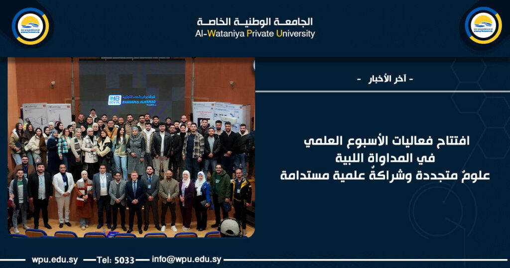 انطلاقاً من مسؤوليتها في رفع السوية العلمية والمهنية لطلاب طب الأسنان ، أقامت كلية طب الأسنان في الجامعة الوطنية الخاصة بالتعاون مع شركة برام والحمد فعاليات ” الأسبوع العلمي في المداواة اللبية ” يوم الأحد الموافق 11 كانون الثاني 2026 في خطوةٍ نحو مواكبة أحدث تقنيات طب الأسنان ، وتوظيف العلوم والخبرات الطبية الحديثة لخدمة الإنسان والمجتمع .