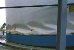 الشكل (11): تضرر سقف خزانات أرضية بسبب حركة الماء المتماوج داخل الخزان، [2].