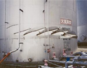 الشكل (13): تخلخل التربة الناجم عن الزلازل أسفل خزانات في اليابان إثر زلزال Kobe عام 1995، [2].