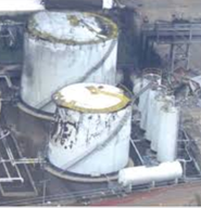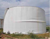 الشكل (8): خزانات معدنية أرضية تعرضت للتحنيب من نوع diamond buckling عند القاعدة، [3].