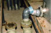 تنهار الوصلات بسبب الحركة النسبية بين الخزان والأنابيب والمعدات الملحقة أثناء الهزة الأرضية مما يسبب خروج الخزان عن الخدمة، كما هو ظاهر في الشكل (14).