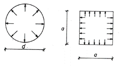 تمتاز الخزانات القشرية بكلفة أقل مما هي عليه الخزانات المضلعة، لأن جدران حوض الخزان في هذه الحالة تتعرض لإجهادات ناظمية فقط، بينما جدران حوض الخزانات المضلّعة تتعرض لدفع ماء هيدروستاتيكي كما يظهر في الشكل (16)، ينتج عنه إجهادات ناظمية مع عزم انعطاف وهذا يتطلب كمية أكبر من البيتون المسلح لمقاومة عزم الانعطاف الكبير الناتج، [4]، [5].