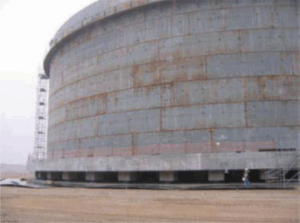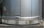 عند بلوغ إجهاد الشد قيمته الحدية في الشريحة الحلقية فوق القاعدة فإن أي زيادة بسيطة في قوى الضغط الشاقولية تتسبب بظاهرة التحنيب من نوع elephant foot، ويوضح الشكل (6) تعرض خزانات معدنية أرضية لهذا النوع من التحنيب.