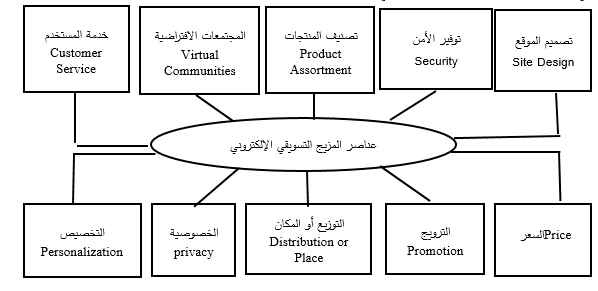 الشكل (1) عناصر المزيج التسويقي الإلكتروني