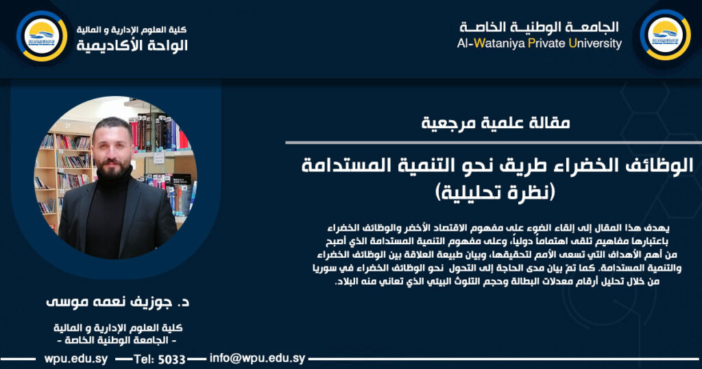 مقالة علمية:الوظائف الخضراء طريق نحو التنمية المستدامة (نظرة تحليلية) د. جوزيف نعمه موسى مقالة علمية:الوظائف الخضراء طريق نحو التنمية المستدامة (نظرة تحليلية) د. جوزيف نعمه موسى قراءة المزيد »